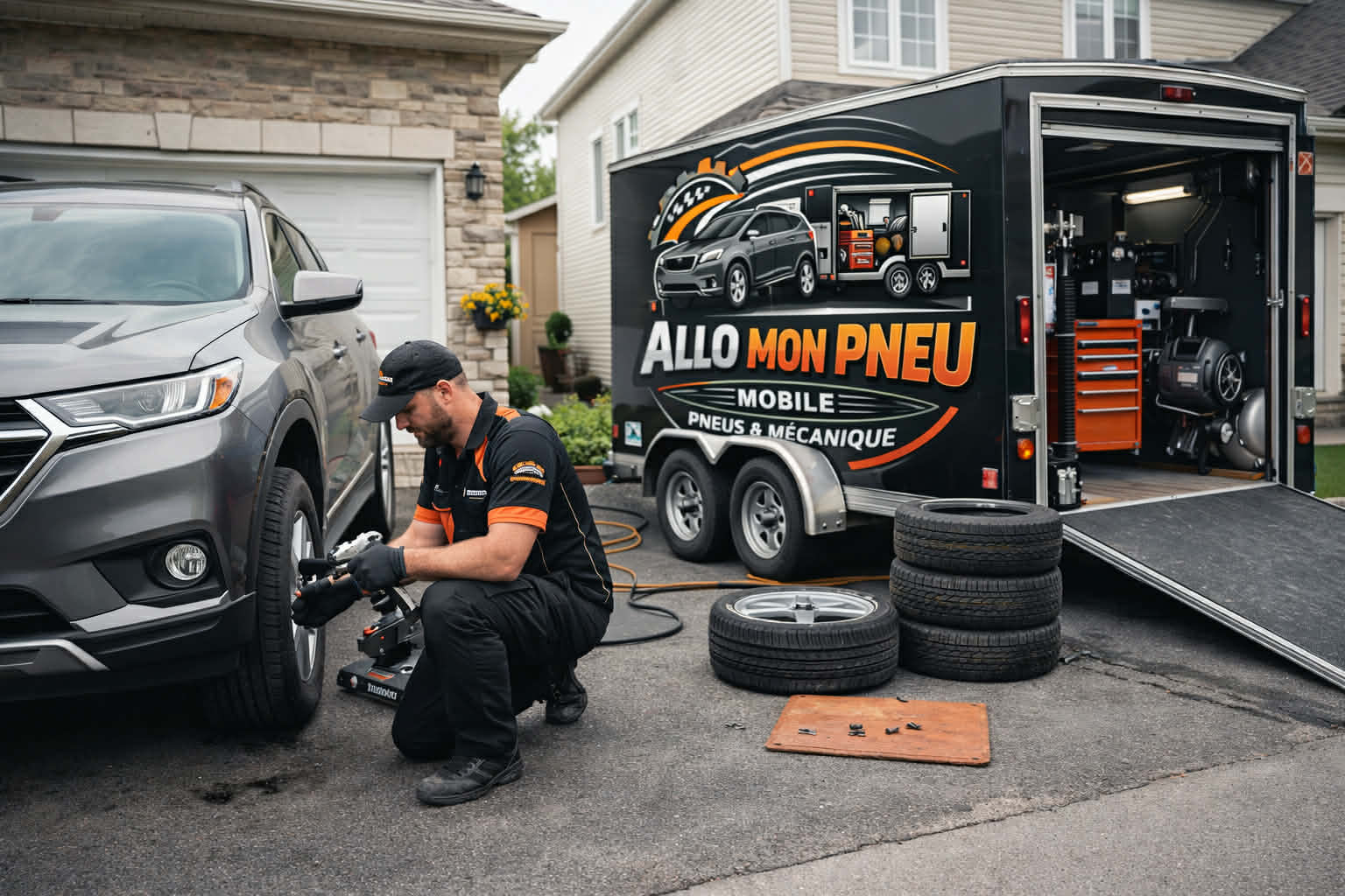 Avec Allo Mon Pneu, profitez d’un service rapide et professionnel directement chez vous ou au travail. Nous nous déplaçons avec notre atelier mobile pour effectuer changement de pneus, équilibrage et mécanique légère sans que vous ayez à vous déplacer. Simple, rapide et efficace.